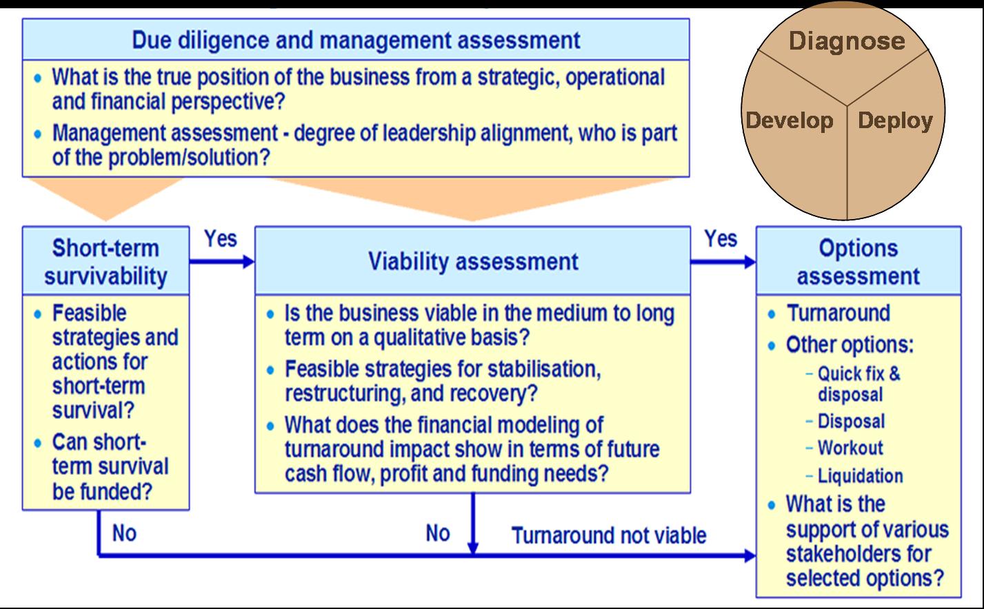 | Based on our experience, and using tried and tested tools and methodologies, we are able to rapidly spot problems in troubled companies and create new solutions that may not be visible to company insiders or concerned onlookers. We utilise our 3D approach: - Diagnose the real issues within the distressed company - Develop solutions tailored to the companies needs - Deploy these solutions until the company is stabilised |