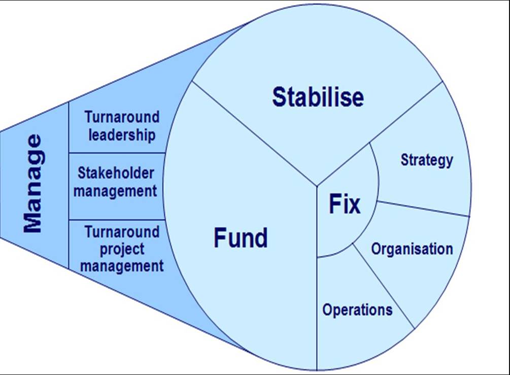 | We provide the process, structure and framework for the turnaround. We constantly renew our own approach by keeping abreast of new ideas by thought leaders and new turnaround developments in the field. We align and reach consensus with all stakeholders, including banks, investors, board, management, employees, customers and suppliers. |